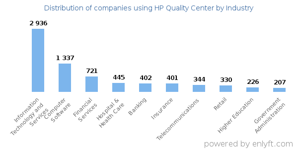 We have data on 12,746 companies that use HP Quality Center. The companies using HP Quality Center are most often found in United States and in the Information Technology and Services industry. HP Quality Center is most often used by companies with 50-200 employees and >1000M dollars in revenue. Our data for HP Quality Center usage goes back as far as 10 years and 2 months.