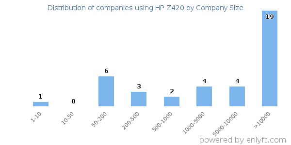 We have data on 39 companies that use HP Z420. The companies using HP Z420 are most often found in United States and in the Information Technology and Services industry. HP Z420 is most often used by companies with >10000 employees and >1000M dollars in revenue. Our data for HP Z420 usage goes back as far as 8 years and 6 months.