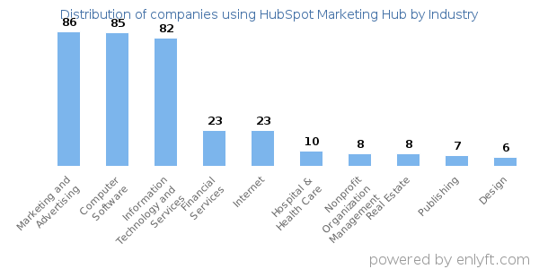 We have data on 522 companies that use HubSpot Marketing Hub. The companies using HubSpot Marketing Hub are most often found in United States and in the Marketing and Advertising industry. HubSpot Marketing Hub is most often used by companies with 10-50 employees and 1M-10M dollars in revenue. Our data for HubSpot Marketing Hub usage goes back as far as 3 years and 5 months.
