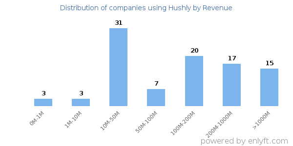 We have data on 103 companies that use Hushly. The companies using Hushly are most often found in United States and in the Computer Software industry. Hushly is most often used by companies with 500-1000 employees and 10M-50M dollars in revenue. Our data for Hushly usage goes back as far as 8 years and 3 months.