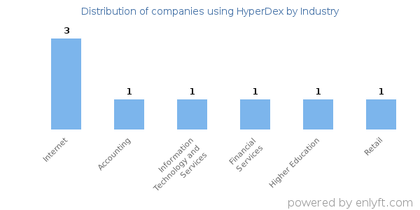 We have data on 9 companies that use HyperDex. The companies using HyperDex are most often found in United States and in the Internet industry. HyperDex is most often used by companies with 1000-5000 employees and >1000M dollars in revenue. Our data for HyperDex usage goes back as far as 8 years and 5 months.