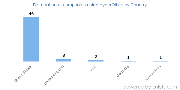 We have data on 53 companies that use HyperOffice. The companies using HyperOffice are most often found in United States and in the Hospital & Health Care industry. HyperOffice is most often used by companies with >10000 employees and >1000M dollars in revenue. Our data for HyperOffice usage goes back as far as 8 years and 6 months.