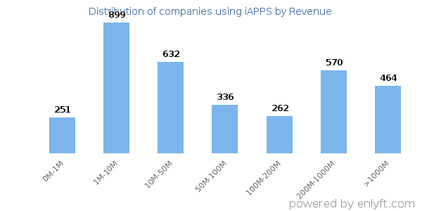 We have data on 4,638 companies that use iAPPS. The companies using iAPPS are most often found in United States and in the Government Administration industry. iAPPS is most often used by companies with 1-10 employees and 1M-10M dollars in revenue. Our data for iAPPS usage goes back as far as 8 years and 10 months.