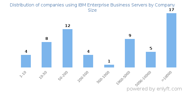 Of all the customers that are using IBM Enterprise Business Servers, 17% are small (<50 employees), 24% are medium-sized and 46% are large (>1000 employees).