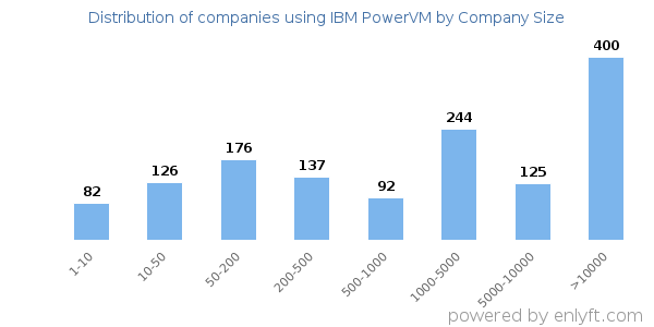 We have data on 1,400 companies that use IBM PowerVM. The companies using IBM PowerVM are most often found in United States and in the Information Technology and Services industry. IBM PowerVM is most often used by companies with >10000 employees and >1000M dollars in revenue. Our data for IBM PowerVM usage goes back as far as 9 years and 7 months.