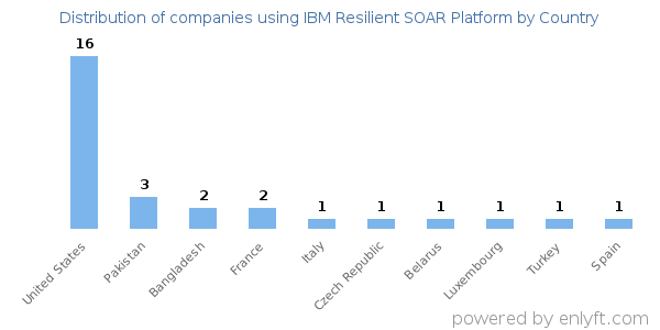 42% of IBM Resilient SOAR Platform customers are in United States and 6% are in Pakistan.
