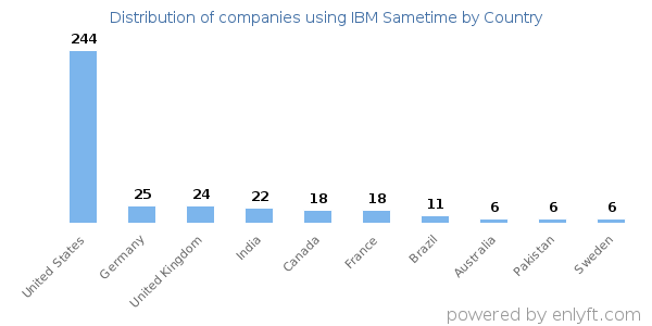 51% of IBM Sametime customers are in United States and 5% are in Germany.