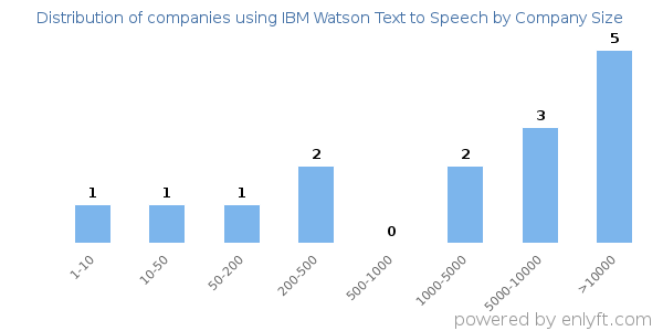 Of all the customers that are using IBM Watson Text to Speech, a majority (50%) are large (>1000 employees), 2% are small (<50 employees) and 9% are medium-sized.