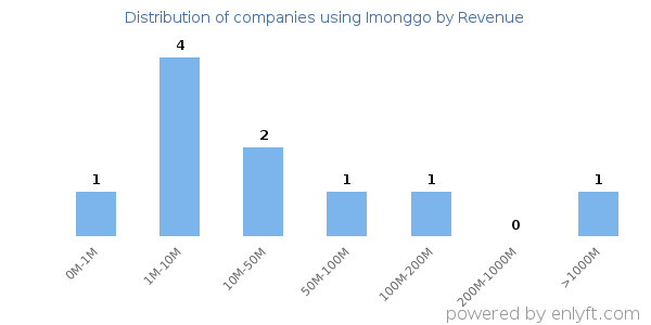 Of all the customers that are using Imonggo, 44% are small (<$50M), 0% are medium-sized and 0% are large (>$1000M).