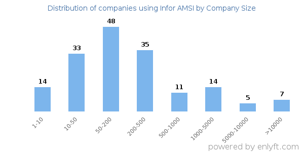 Of all the customers that are using Infor AMSI, a majority (54%) are medium-sized, 14% are large ( >1000 employees) and 27 are small (<50 employees).
