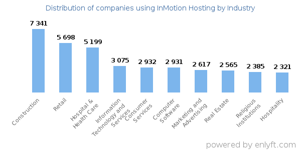 Looking at InMotion Hosting customers by industry, we find that Construction (5%) is the largest segment.
