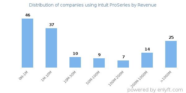 Of all the customers that are using Intuit ProSeries, a majority (61%) are small (<$50M), 25% are large (>$1000M) and 6% are medium-sized.