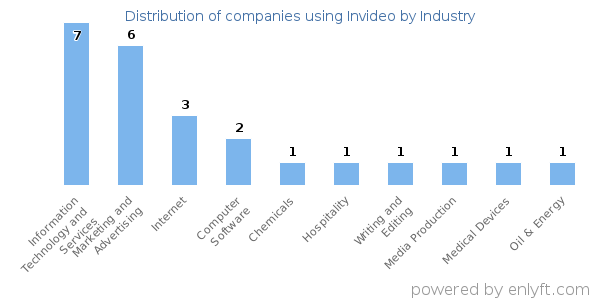 Looking at Invideo customers by industry, we find that Information Technology and Services (17%), Marketing and Advertising (15%) and Internet (7%) are the largest segments.