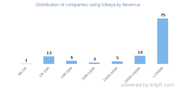 Of all the customers that are using iObeya, a majority (73%) are large (>$1000M), 10% are small (<$50M) and 0% are medium-sized.