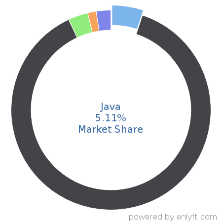 We use the best indexing techniques combined with advanced data science to monitor the market share of over 15,000 technology products, including Programming Languages. By scanning billions of public documents, we are able to collect deep insights on every company, with over 100 data fields per company at an average. In the Programming Languages category, Java has a market share of about 5.1%. Other major and competing products in this category include: