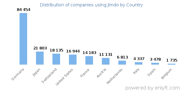 We have data on 317,994 companies that use Jimdo. Jimdo is most often used by companies with 1-10 employees and 1M-10M dollars in revenue. Our data for Jimdo usage goes back as far as 8 years and 11 months.