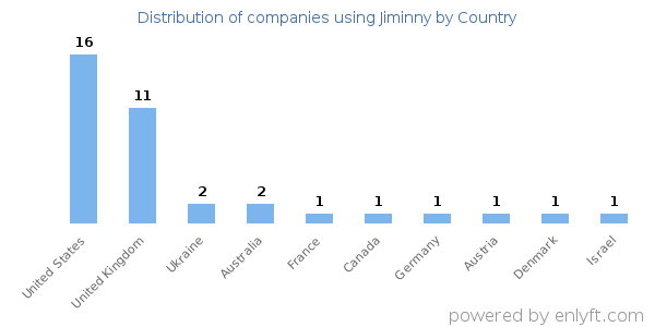 We have data on 39 companies that use Jiminny. The companies using Jiminny are most often found in United States and in the Computer Software industry. Jiminny is most often used by companies with 50-200 employees and 10M-50M dollars in revenue. Our data for Jiminny usage goes back as far as 5 years and 11 months.
