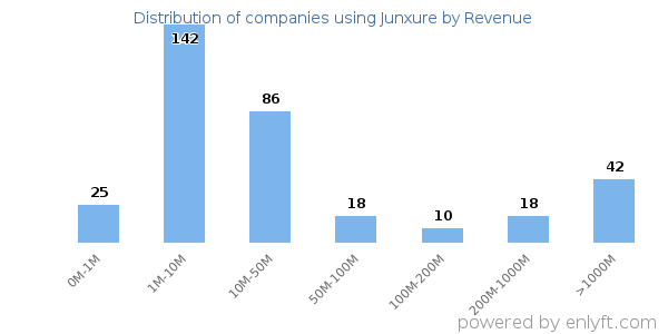 Of all the customers that are using Junxure, a majority (73%) are small (<$50M), 17% are large (>$1000M) and 5% are medium-sized.