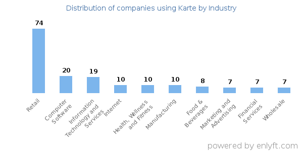 Looking at Karte customers by industry, we find that Retail (16%) is the largest segment.