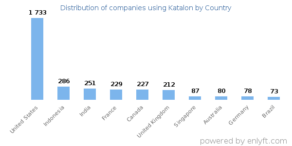 We have data on 4,585 companies that use Katalon. The companies using Katalon are most often found in United States and in the Information Technology and Services industry. Katalon is most often used by companies with 50-200 employees and 10M-50M dollars in revenue. Our data for Katalon usage goes back as far as 3 years and 2 months.