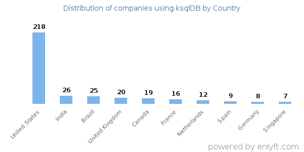 We have data on 464 companies that use ksqlDB. The companies using ksqlDB are most often found in United States and in the Information Technology and Services industry. ksqlDB is most often used by companies with >10000 employees and >1000M dollars in revenue. Our data for ksqlDB usage goes back as far as 3 years and 11 months.