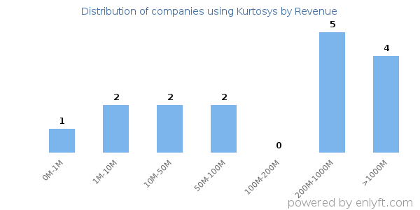 We have data on 16 companies that use Kurtosys. The companies using Kurtosys are most often found in United Kingdom and in the Financial Services industry. Kurtosys is most often used by companies with 1000-5000 employees and 200M-1000M dollars in revenue. Our data for Kurtosys usage goes back as far as 2 years and 5 months.