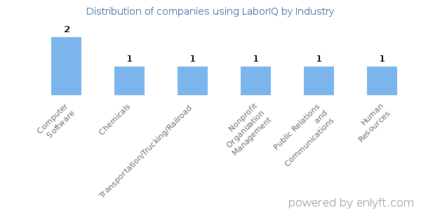We have data on 8 companies that use LaborIQ. The companies using LaborIQ are most often found in United States and in the Computer Software industry. LaborIQ is most often used by companies with 50-200 employees and 10M-50M dollars in revenue. Our data for LaborIQ usage goes back as far as 3 years and 3 months.