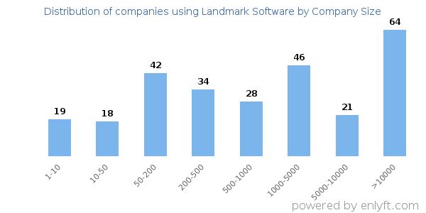 Of all the customers that are using Landmark Software, 13% are small (<50 employees), 37% are medium-sized and 46% are large (>1000 employees).