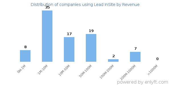 Of all the customers that are using Lead InSite, a majority (63%) are small (<$50M), 8% are large (>$1000M) and 20% are medium-sized.