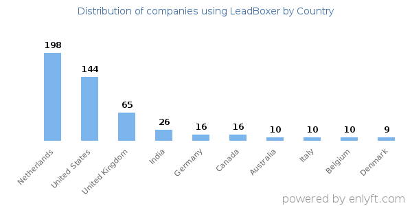 31% of LeadBoxer customers are in Netherlands, 23% are in United States and 10% are in United Kingdom.