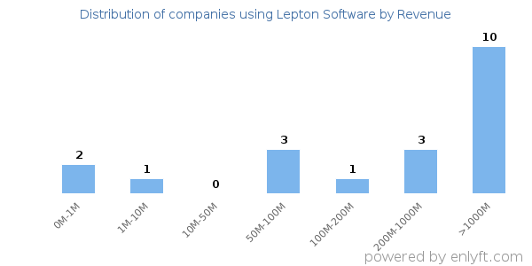 Of all the customers that are using Lepton Software, a majority (53%) are large (>$1000M), 6% are small (<$50M) and 11% are medium-sized.
