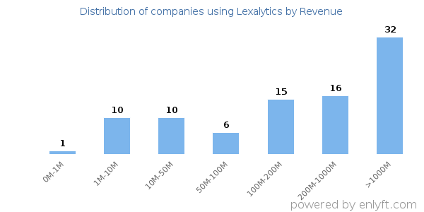 We have data on 93 companies that use Lexalytics. The companies using Lexalytics are most often found in United States and in the Computer Software industry. Lexalytics is most often used by companies with >10000 employees and >1000M dollars in revenue. Our data for Lexalytics usage goes back as far as 8 years and 6 months.
