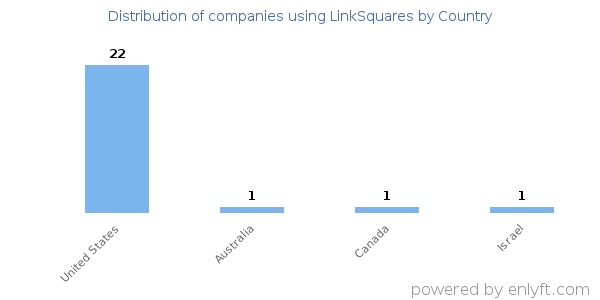 We have data on 25 companies that use LinkSquares. The companies using LinkSquares are most often found in United States and in the Computer Software industry. LinkSquares is most often used by companies with 200-500 employees and 10M-50M dollars in revenue. Our data for LinkSquares usage goes back as far as 1 years and 9 months.
