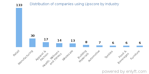 Looking at Lipscore customers by industry, we find that Retail (32%) and Manufacturing (7%) are the largest segments.