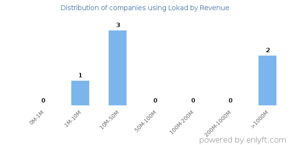We have data on 6 companies that use Lokad. The companies using Lokad are most often found in France and in the Retail industry. Lokad is most often used by companies with 50-200 employees and 10M-50M dollars in revenue. Our data for Lokad usage goes back as far as 8 years and 2 months.