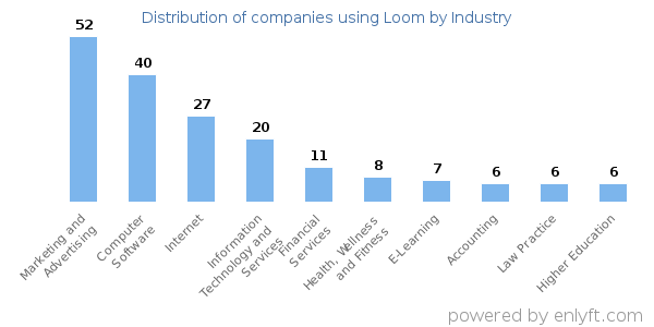 Looking at Loom customers by industry, we find that Marketing and Advertising (18%), Computer Software (13%), Internet (9%) and Information Technology and Services (7%) are the largest segments.