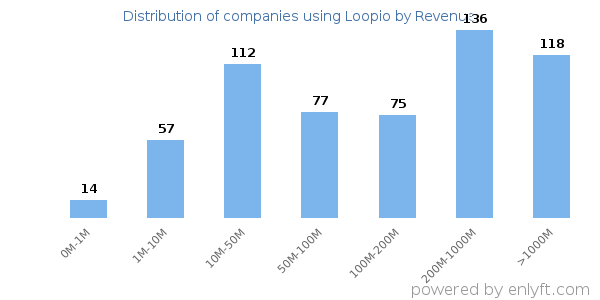 We have data on 610 companies that use Loopio. The companies using Loopio are most often found in United States and in the Computer Software industry. Loopio is most often used by companies with 1000-5000 employees and 200M-1000M dollars in revenue. Our data for Loopio usage goes back as far as 3 years and 3 months.