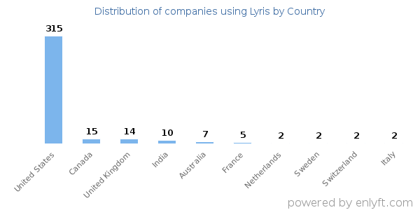 We have data on 396 companies that use Lyris. The companies using Lyris are most often found in United States and in the Higher Education industry. Lyris is most often used by companies with >10000 employees and >1000M dollars in revenue. Our data for Lyris usage goes back as far as 10 years and 3 months.