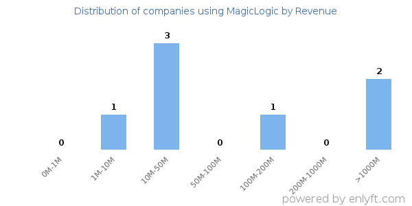 We have data on 7 companies that use MagicLogic. MagicLogic is most often used by companies with 50-200 employees and 10M-50M dollars in revenue. Our data for MagicLogic usage goes back as far as 8 years and 2 months.