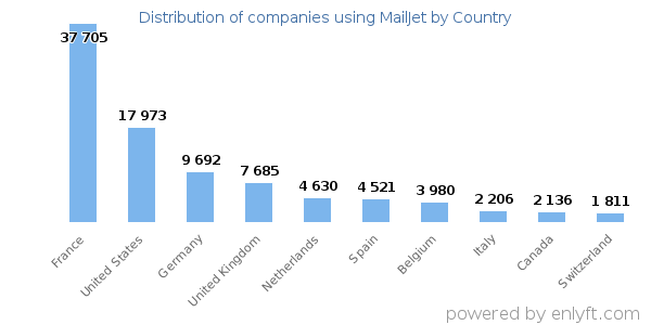 We have data on 154,838 companies that use MailJet. MailJet is most often used by companies with 1-10 employees and 1M-10M dollars in revenue. Our data for MailJet usage goes back as far as 8 years and 11 months.
