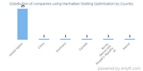 We have data on 30 companies that use Manhattan Slotting Optimization. The companies using Manhattan Slotting Optimization are most often found in United States and in the Retail industry. Manhattan Slotting Optimization is most often used by companies with >10000 employees and >1000M dollars in revenue. Our data for Manhattan Slotting Optimization usage goes back as far as 8 years and 6 months.