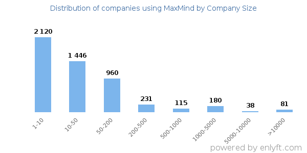 We have data on 6,902 companies that use MaxMind. The companies using MaxMind are most often found in United States and in the Retail industry. MaxMind is most often used by companies with 1-10 employees and 1M-10M dollars in revenue. Our data for MaxMind usage goes back as far as 9 years.