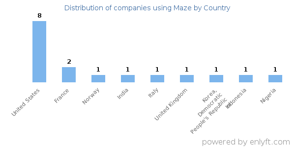We have data on 17 companies that use Maze. The companies using Maze are most often found in United States and in the Education Management industry. Maze is most often used by companies with 50-200 employees and 10M-50M dollars in revenue. Our data for Maze usage goes back as far as 2 years and 2 months.
