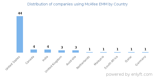 62% of McAfee EMM customers are in United States.