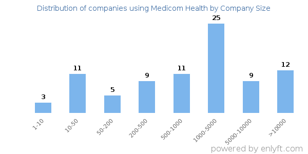 Of all the customers that are using Medicom Health, a majority (51%) are large (>1000 employees), 15% are small (<50 employees) and 27% are medium-sized.