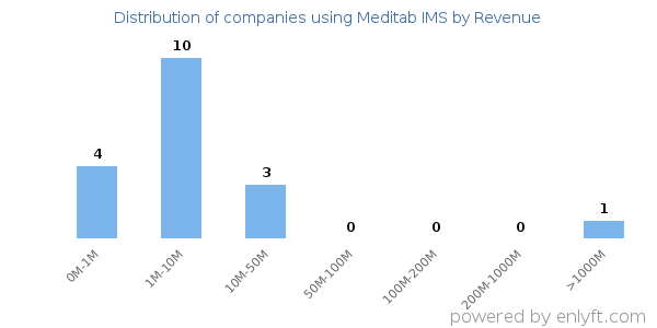 Of all the customers that are using Meditab IMS, a majority (78%) are small (<$50M), 0% are large (>$1000M) and 0% are medium-sized.