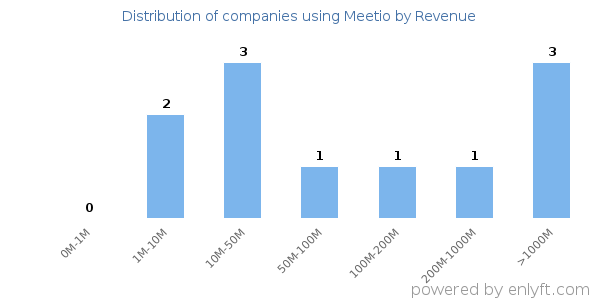 Of all the customers that are using Meetio, 28% are small (<$50M), 0% are medium-sized and 18% are large (>$1000M).