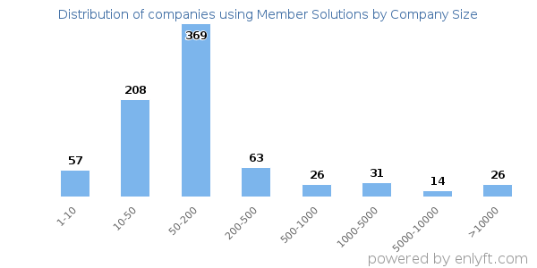 We have data on 803 companies that use Member Solutions. The companies using Member Solutions are most often found in United States and in the Hospitality industry. Member Solutions is most often used by companies with 50-200 employees and 1M-10M dollars in revenue. Our data for Member Solutions usage goes back as far as 8 years and 2 months.