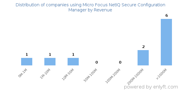 Of all the customers that are using Micro Focus NetIQ Secure Configuration Manager, a majority (58%) are large (>$1000M), 0% are small (<$50M) and 0% are medium-sized.