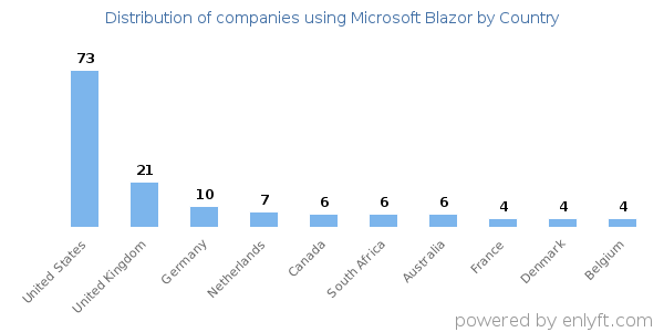 32% of Microsoft Blazor customers are in United States and 9% are in United Kingdom.